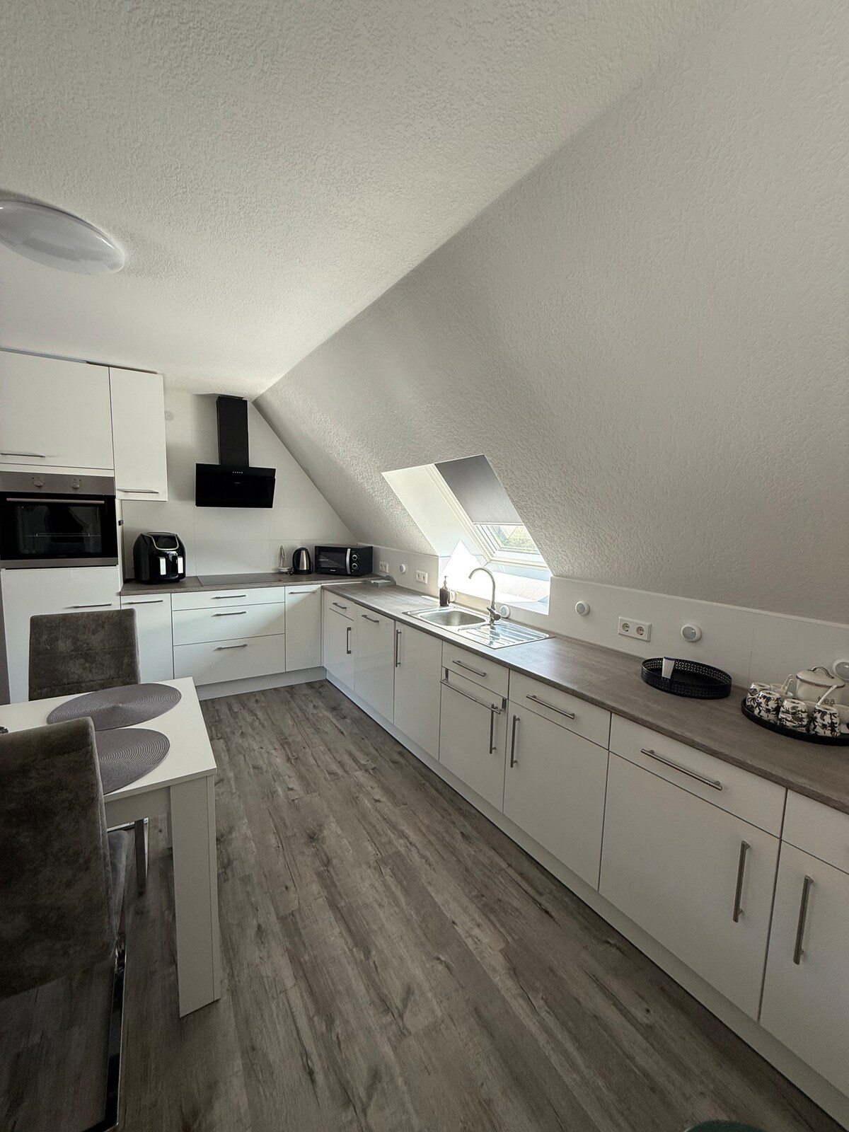 Нещодавно відремонтована, стильно обставлена 3-кімнатна квартира на горищі в центральному місці поблизу EOC у Клеве. У квартирі є затишне ліжко з пружинним матрацом, окрема кімната з двома односпальними ліжками, смарт-телевізор і пральна машина 2-в-1 із сушаркою. Світлі кімнати, сучасний дизайн і якісні меблі забезпечують комфорт на високому рівні. Тихе розташування, з хорошим автобусним сполученням – залізничний вокзал знаходиться на відстані близько 2 км. Ідеально підходить для відпочинку або ділових поїздок.