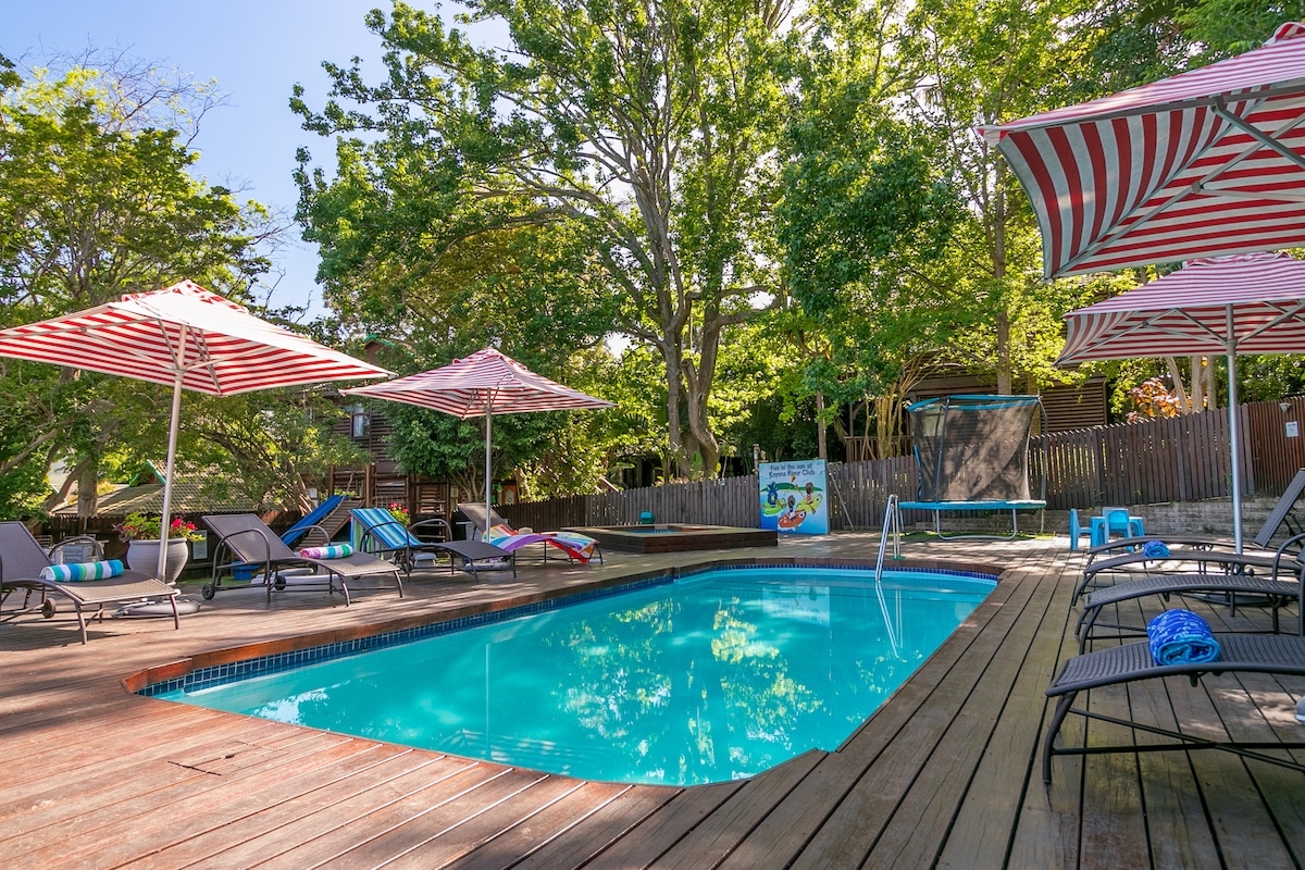 Привабливий будинок із двома спальнями, розташований на невеликому пляжі Thesens Island. Ідеально підходить для сімей з дітьми. Повністю обладнана кухня з посудомийною машиною та пральнею. У будинку є DSTV. Острови Тесен мають цілодобовий контроль доступу до безпеки. До набережної Knysna Quays і Thesen Harbour можна дістатися пішки. Острови Тесен - найпопулярніші місця для відпочинку на Садовому маршруті. Є вебер-браай і прямий вихід з патіо на невеликий пляж Тесен. У будинку є Wi-Fi.