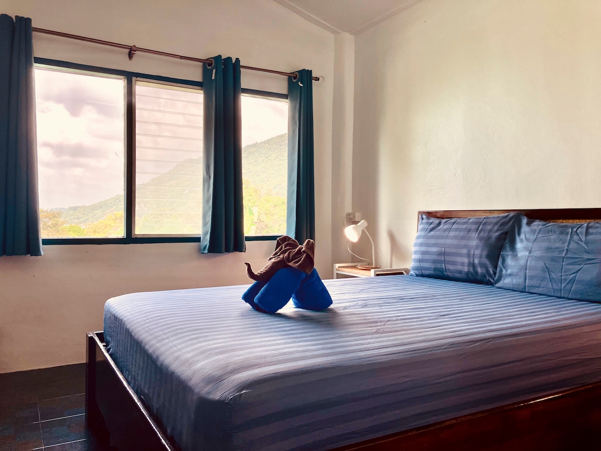Вілла ідеально розташована між центром Чавенга та Ламаєм на пагорбі Чавенг-Ной, до якого легко дістатися. 900 м від пляжу Ми розташовані на території старих вирубаних джунглів. У нас досі багато рослин, і це прекрасно. собаки можуть гуляти навколо, їх багато скрізь у Таїланді. Вони можуть час від часу гавкати. Спальня з прекрасним видом на море та схід сонця, щоб милуватися з ліжка або приватної тераси