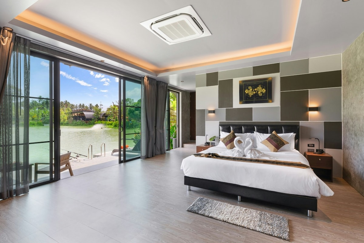 Вілла з басейном біля пляжу з білими китами З кожної кімнати відкривається прекрасний краєвид на море. Просто відкрийте двері і пройдіть кілька кроків до чистого і спокійного пляжу Банг-Пор. Вілла оформлена в мінімалістичному білому стилі з теплими дерев’яними деталями та чарівним декором у вигляді китів. Кожна вілла, оточена пишною зеленню та свіжим океанським повітрям, повністю обладнана усіма необхідними зручностями для комфортного перебування.