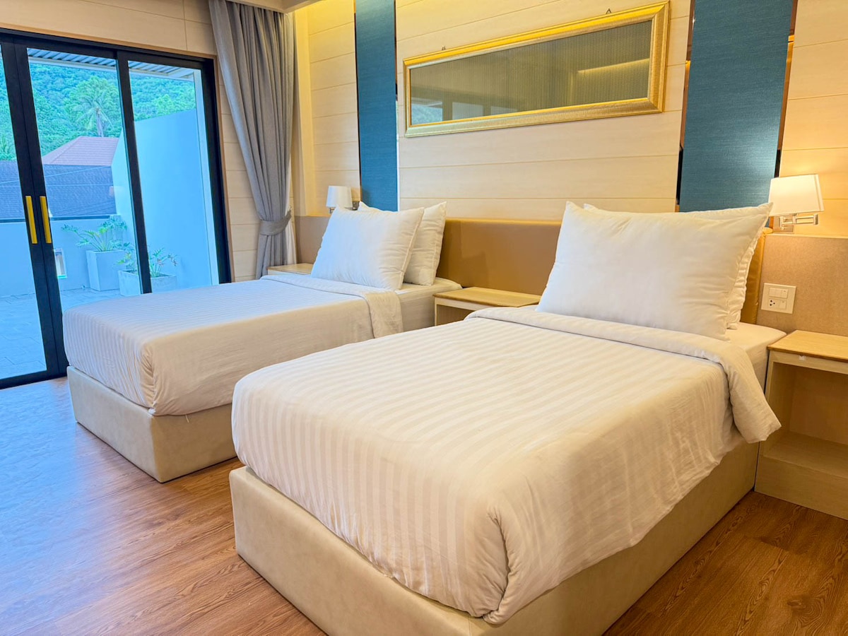 Villa Seaview Garden is a fantastic apartment with a stunning ocean views looking out to the world famous Nang Yuan Island. It is a large area totalling 140 sqm, with 3 large bedrooms, 3 en-suite bathrooms, kitchen, living room area and large balcony so there is plenty of space to relax and enjoy the view! Guests also have access to the large terrace and swimming pool area. Our apartments are much more easily accessible without steep hills which makes it ideal for families staying with us.
