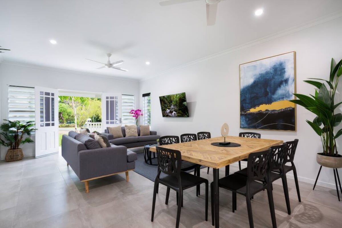 Чи є у вас додаткова велика сім 'я або група, яку потрібно прийняти? Хочете отримати великий басейн з підігрівом і водою? Ви знайшли правильне оголошення, тому не дивіться далі! Цей будинок розташований недалеко від аеропорту і знаходиться недалеко від центру міста. Це ідеальна база для вашого відпочинку в Північному QLD. Вам сподобається приватність і особливості, які пропонує цей будинок. Ви відчуєте, що перебуваєте на власному тропічному курорті.