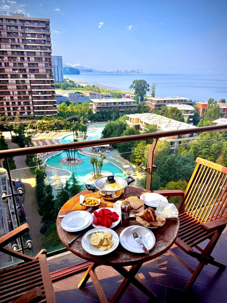 Dreamland Oasis Chakvi. Корпус 4, поверх 3. Велика квартира (хол+спальня). Площа 70 м2 Перша лінія. Панорамний вид на море. Приватний пляж на Чорному морі знаходиться менше ніж за хвилину ходьби. На території комплексу розташовано понад 50 об’єктів: - 4 відкриті басейни; Аквапарк - різноманітні бари та ресторани - кілька ігрових майданчиків, дитячі ігрові кімнати; - Боулінг-холл - Кінотеатр - Нічний клуб - Тенісні корти - спортивні майданчики та багато іншого;
