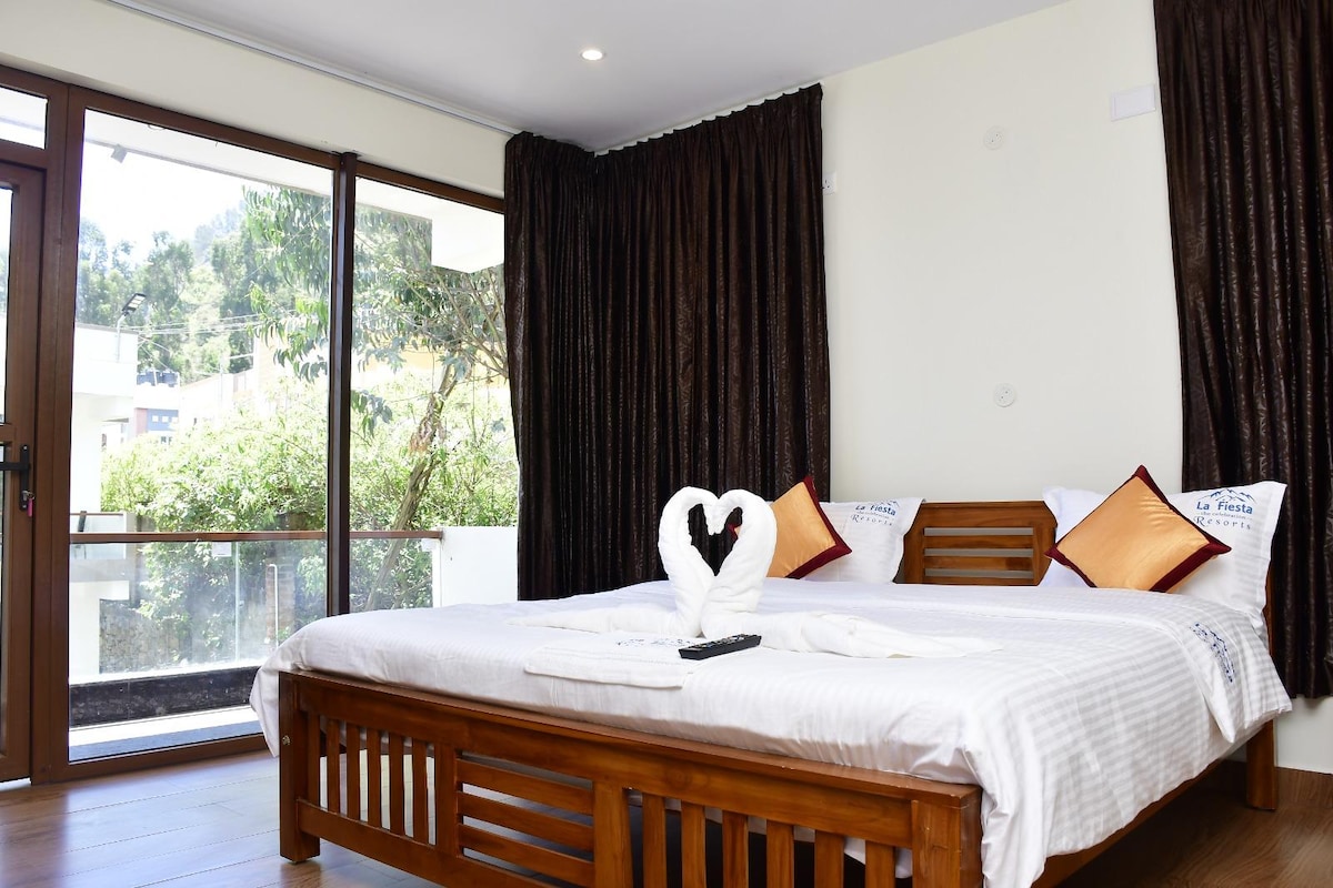 Dr Misty Hub is designed for comfort, space and convenience, perfect for families and group travellers. The suite features a spacious master bedroom, additional sleeping space, a modern attached bathroom, and a comfortable living area for relaxing together. Enjoy high-speed WiFi, Android TV, a fully equipped kitchen and warm interiors that feel like home. Large windows bring in fresh hill air and misty views, creating a peaceful stay. Ideal for families seeking privacy.