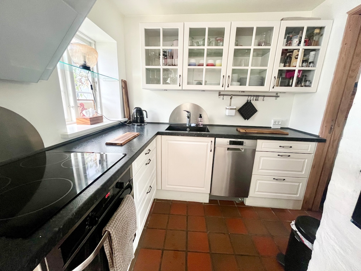 Відпочиньте з усією сім'єю в цьому тихому помешканні. У продовження будинку орендодавця, ця нещодавно відремонтована квартира з окремим входом і затишною терасою, розташована в мальовничому житловому районі. 2 великі кімнати з двоспальними ліжками та можливістю розкласти диван для 2 осіб у вітальні. Туалет з душем і пральною машиною, а також кухня з усім, включаючи посудомийну машину. 150 метрів пішки до пляжу, 350 метрів до красивого лугу та затишного лісу. Можливість покупки в пішій доступності, і 30 хвилин їзди до центру Копенгагена