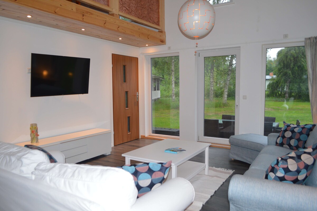Шукаєте просторі краєвиди та спокійну обстановку, це ідеальне помешкання для вас! Похід, рибалка, плавання, велосипед, ігрова падель - це лише кілька доступних заходів. Тут вас зустріне нещодавно побудоване та стильне помешкання з відкритим плануванням поверху та високими стелями. Шість ліжок розділені на дві спальні. Повністю обладнана кухня, камін і підігрів підлоги у ванній кімнаті та коридорі. Від Kungsberget ви також недалеко від Högbo gård, Furuvik, Ockelbo, Sandviken та інших із безліччю заходів. Вітаю!