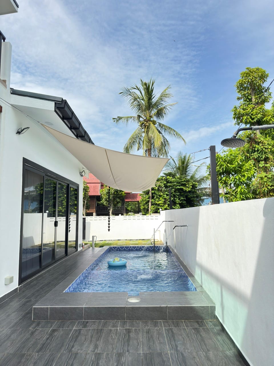 Мінібудинок із буханкою та двомісним простором разом із приватним басейном і затишним заднім двором. Вбудований сільський матеріал. Атмосфера покращується біля альтанки та ставка для риби. Стратегічне розташування, недалеко від аеропорту, Pantai Cahaya Bulan та плавучого ринку Pulau Suri & Sri Tanjung.
