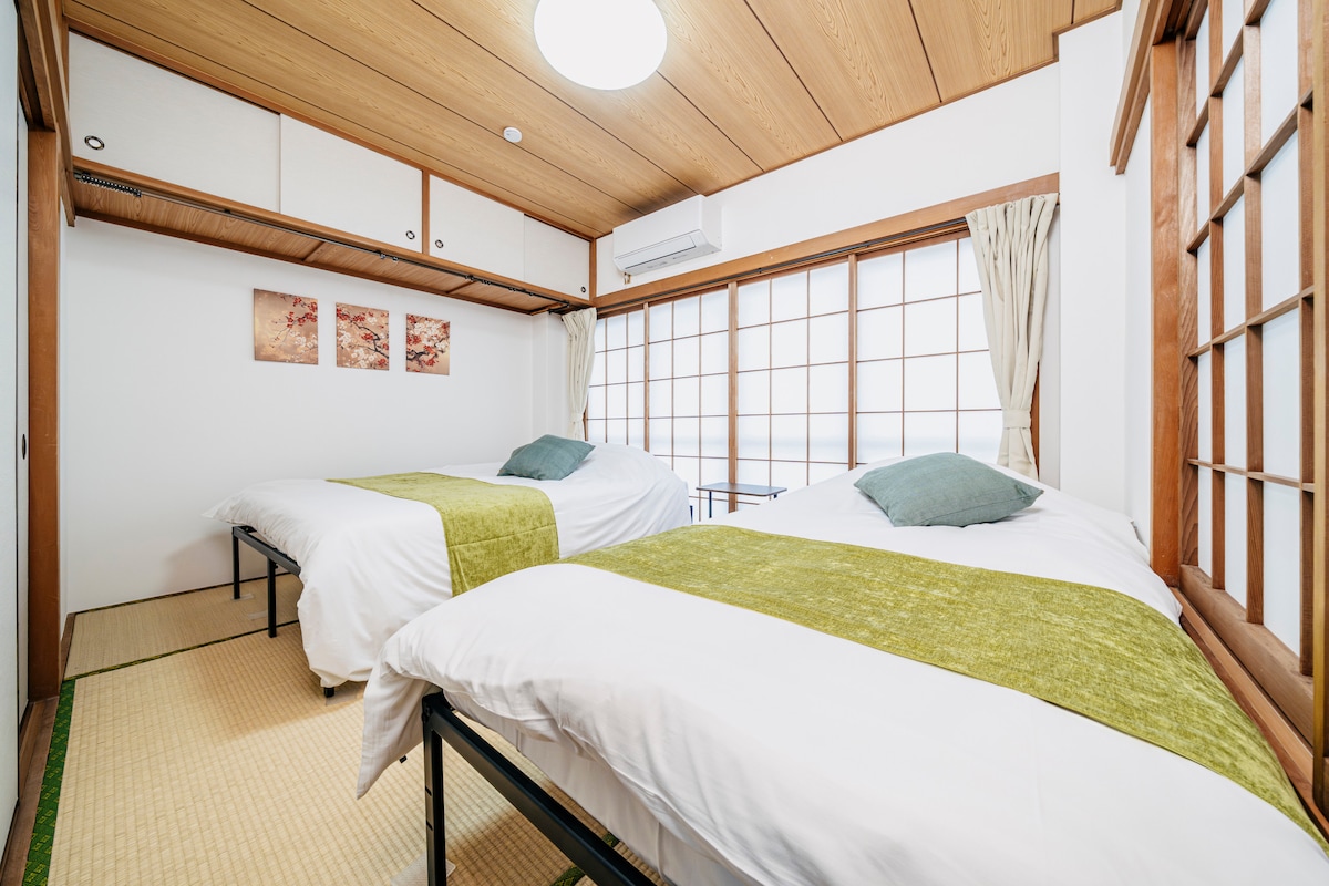 このリスティングは、ご家族や仲間と中長期の滞在を楽しむ拠点に向いています。 都心に近い静かな住宅エリアにある2023年オープンのアパートメントホテルです。周辺には水辺、公園、神社があります。 35㎡の広々とした室内は、日本風デザインです。1台のクイーンベッド、3つの布団があり、大人5人まで泊まれます。(2歳未満乳幼児の添い寝は無料です。) 自炊のできるコンパクトキッチン、全自動の洗濯乾燥機、広々としたサイズのバスルーム、独立したトイレがあります。 アンドロイドTVやフリーWi-Fiの環境も整備されていますので、室内で過ごしたりお仕事をするにも充分な環境です。 ゲストに開放されたルーフトップでリラックスすることもできます。 チェックインは、タブレットを使う無人のチェックインシステムですので、深夜でも気兼ねすることはありません。ドアは最新式のタッチキーシステムで管理されています。 最寄りの駅(住吉駅・半蔵門線・都営新宿線)の出口から徒歩5分の場所にあり、近くにはスーパーマーケットなどがあります。 こちらの落ち着いた宿泊先で、ご家族一緒におくつろぎください。