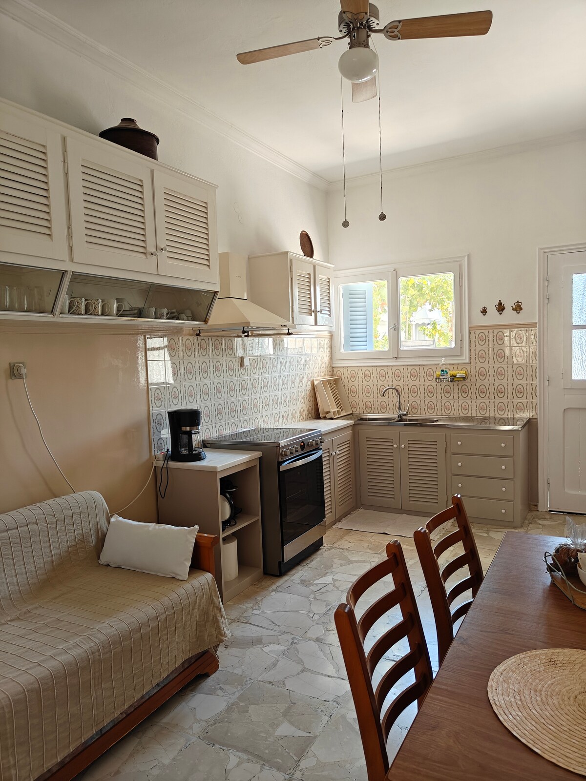 Квартира розташована в 10 хвилинах ходьби від комерційного центру острова в тихому житловому районі. Це комфортна, простора, світла квартира з романтичною старовинною атмосферою. Він складається з 2 спалень, ванної кімнати, повністю обладнаної кухні/зони відпочинку, балкона та тераси. Я живу по сусідству і завжди у вашому розпорядженні для всього, що вам може знадобитися.