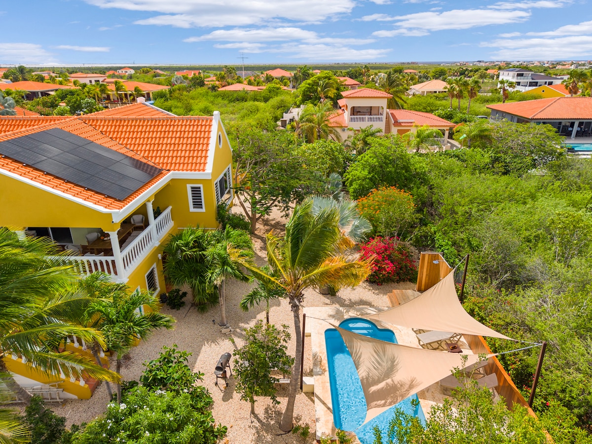 Ця розкішна вілла з приватним басейном розташована в Плайя (центр Кралендейка), всього за дві хвилини ходьби до океану. Жвавий, але все ще тихий район. До самого серця Кралендейка можна дістатися за 15 хвилин. Ми надаємо повністю обладнану кухню, простору вітальню площею 70 кв. м з усіма вашими бажаннями. У вашому розпорядженні є широка крита веранда на задньому дворі з прямим виходом до приватного басейну з шезлонгами.