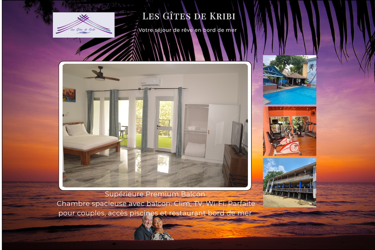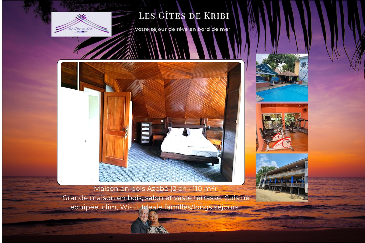 Готель Les Gîtes de Kribi: Цей готель розташований на узбережжі Камеруну і пропонує унікальні враження для тих, хто шукає помешкання в центрі природи з усіма сучасними зручностями. Готель-ресторан, розташований всього в 3 км від центру міста і недалеко від знаменитого Chutes de la Lobé, виділяється своїм широким спектром помешкань, які підходять для сімей, пар і груп.