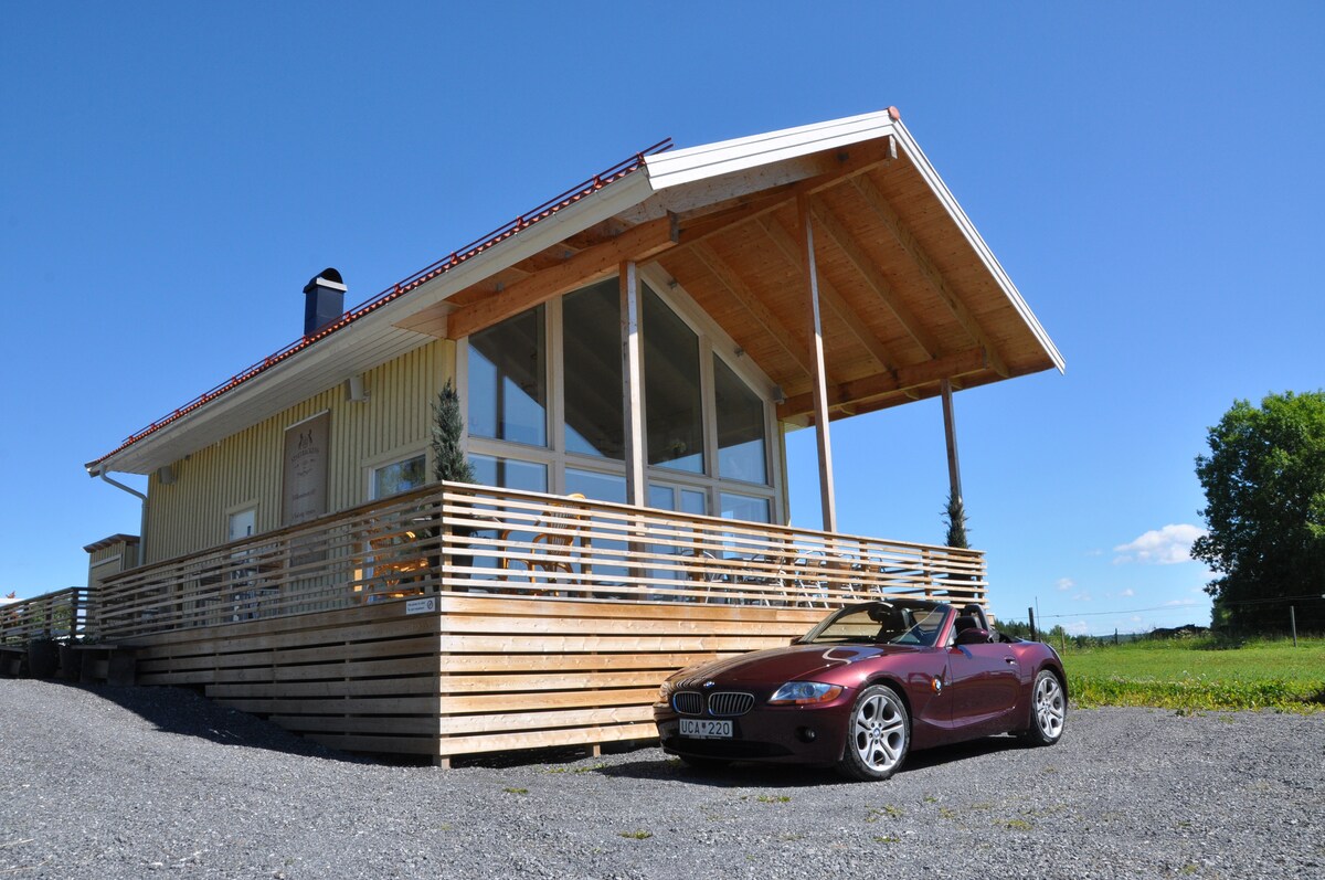 Додаток знаходиться всього за 7 км від Естерсунда на нашій чудовій кінній фермі. Відкритий вид, де пасуться коні у світлі Естерсунда і Фрёшен. Помешкання підходить для всіх - від пар, бізнес-мандрівників до сімей з дітьми. 450 м до автобусної зупинки та гарної велосипедної доріжки до міста. Прибудова була побудована у 2014 році, має повністю обладнану кухню, бездротовий Wi-Fi та аудіосистему Sonos. У вітальні, що знаходиться на відстані понад 5 м від даху, є велика кришталева люстра, камін, обідній стіл, подвійні двері до великої бухти.