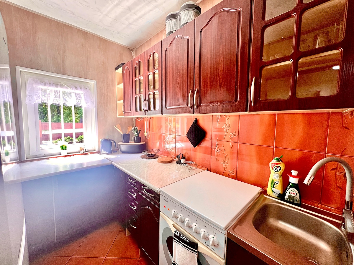 Квартира повністю обладнана. Кухня та ванна кімната, обладнана побутовою технікою, крім базового оздоблення "під ключ", включає додаткове обладнання та меблі, тобто каструлі, сковороди, тарілки, чашки, склянки, миски, кухонний посуд, столові прибори, ножі, дошку для різання, щітку та кошик для сміття. У вітальні: диван, стіл зі стільцями, шафа телевізора, кавовий стіл; у спальні: ліжко, прикрасна лампа, прикрасний стіл, декоративні подушки та покрывала. Готовий йти.