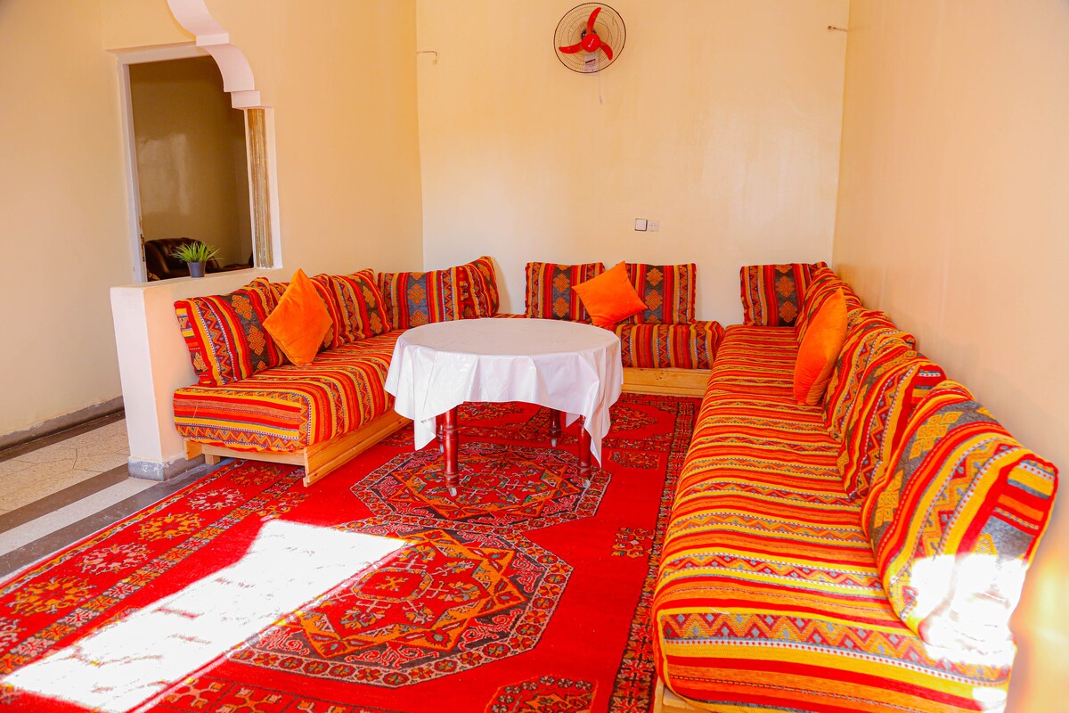 Welcome to our home! is a family-run bed and breakfast where you will feel comfortable. We want to show you traditional Berber hospitality... sleep soundly in your private room and enjoy a tasty breakfast (included) in the morning. Many of our guests plan to stay a single night but then extend it, and our rooms and meals for longer. When you visit us, we hope you'll immediately feel like a family member. "mrehba!" (welcome!)