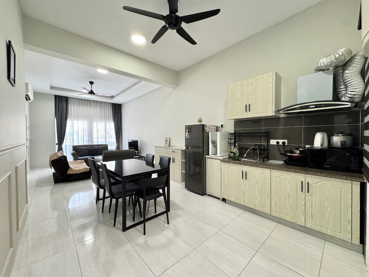 🎊 Ласкаво просимо до помешкання BlueSky Seaview з 3 спальнями. 🔔 A corner lot Apartment Homestay. Домашній Wi-Fi 6 – швидкість 300 Мбіт/с, 🔔 Стратегічне розташування туристичних місць з морепродуктами/місцевими ресторанами, торговими комплексами, точками швидкого харчування, пам 'ятками. 🔔 У кімнаті є базовий кухонний посуд, як-от холодильник, мікрохвильова піч, диспенсер для води Cuckoo та основні кухонні прилади. У 🔔спальнях є двоспальне ліжко татамі з латексним матрацом. 🔔Пральня, ми надаємо пральну та сушильну машини