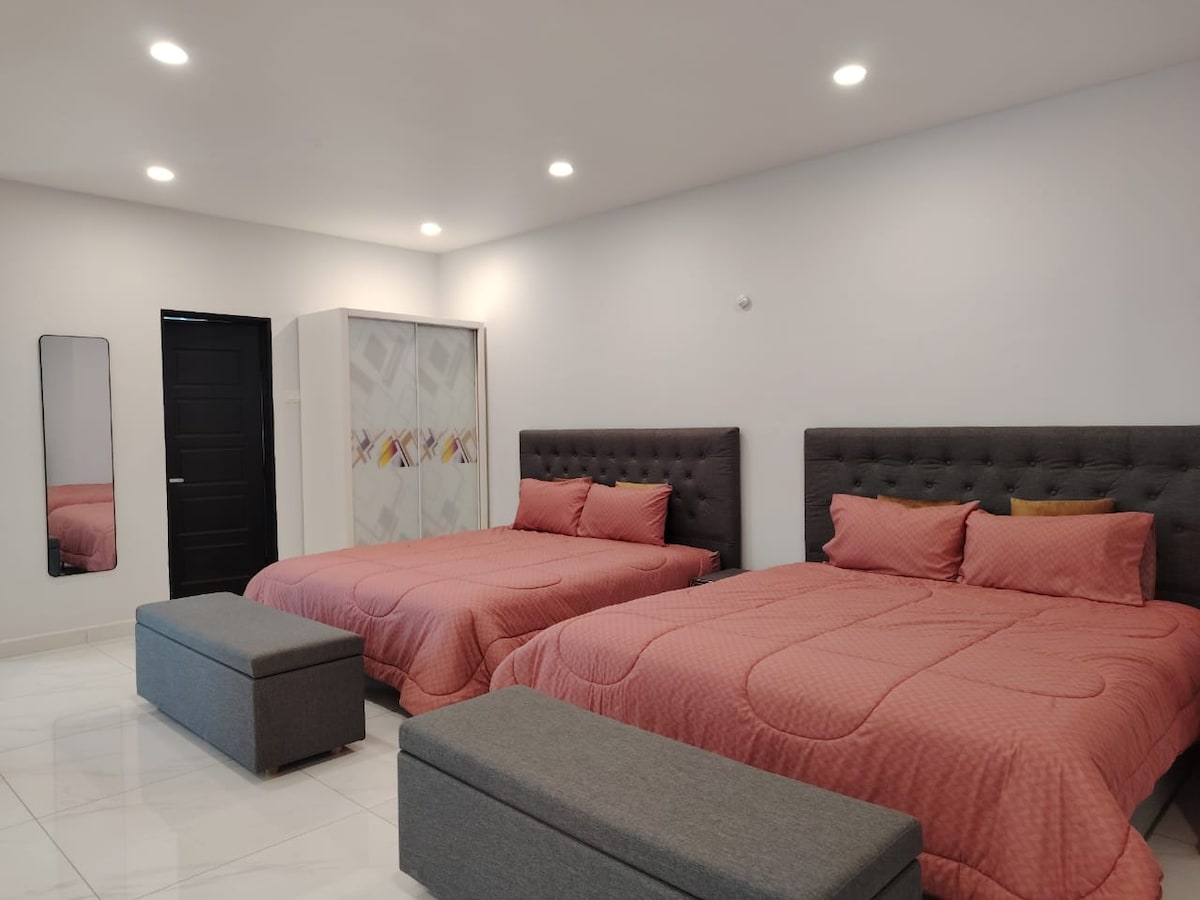 Stay with us in Bandar Bertam, Pulau Pinang. Stategically located, easily accessible via PLUS Highway MUSLIM ONLY Double storey, terrace 22’ x 70’ 4 bedrooms, three bathrooms 2 queen beds , 4 single beds Air cond in living room & all rooms (5 airconds) ceiling fan in all bedrooms Kitchen Washing machine Refrigerator TV 32 inch OTHER FACILITIES Cooking utensils Dining Table Telekung, Quran Praying mat Pillows Blankets Extra Toto Mirror Kettle Bread Toaster Iron Towels Soap
