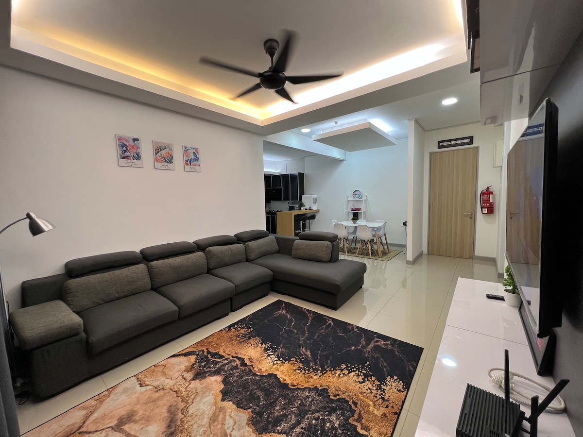 Сучасна квартира з видом на море розташована в центрі міста Куала-Теренгану. Розташований в декількох хвилинах ходьби від торгового центру KTCC, різноманітних закладів харчування, в декількох хвилинах ходьби від Pasar payang. Ідеально підходить для 6 осіб, але може вмістити до 8 осіб. Гості можуть насолоджуватися повністю обладнаною кухнею, двома ванними кімнатами, високошвидкісним Wi-Fi, каналами Unifi та фільмами, каналом Disney hotstar.