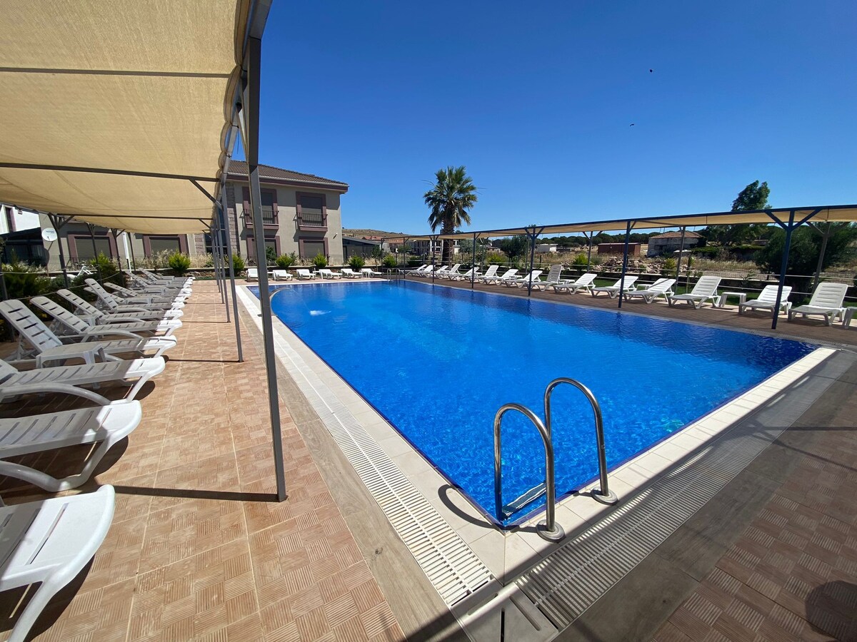 Şehrin gürültüsünden uzakta, tarihi bir sanat köyünde yer alan, sessiz ve sakin bir atmosfer sunan evimiz, modern ve kaliteli mobilyalarla döşenmiştir. Havuzlu, 2 katlı taş han içinde bulunan dairemiz, 1 yatak odası ve geniş bir salon ile konforlu bir konaklama imkanı sunar. Ayvalık merkeze 5 km, sarımsaklı plajına 3 km, Cunda adasına 15km uzaklıkta olan bu tarihi eski Rum köyünde huzurlu bir tatil geçirmek isteyenler için ideal bir seçenektir. havuz saatleri 9:30/19:30