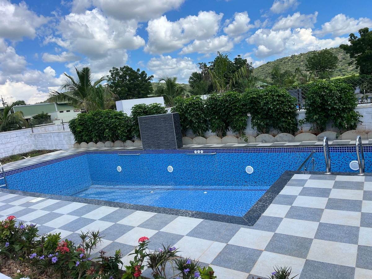 Приїжджайте всією сім 'єю до цього чудового місця з великою кількістю місця для розваг. Усе це перебування, включаючи туалети, було зроблено з термоізольованим дахом. Дуже безпечне місце. Відкрийте для себе приголомшливу красу річки Кришна та лісу Налламолл. Подалі від насиченого й забрудненого життя.
