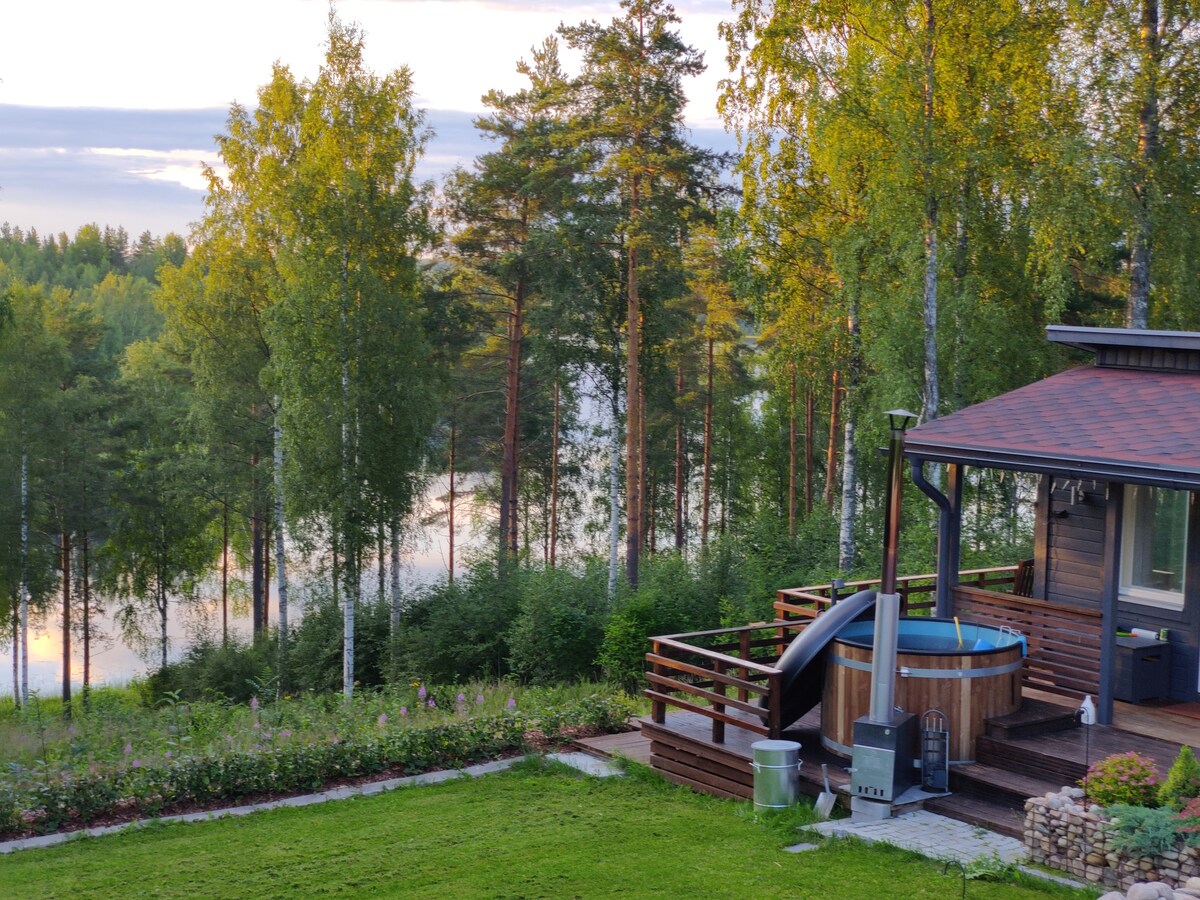 Унікальна сауна з поєднанням нового та старого. Завдяки власному пляжу та пляжній терасі спокійний відпочинок посеред лісу полегшує відпочинок. Поруч ви можете пересуватися на природі, використовувати гребний човен, на якому ви можете спокійно грести на озері. У котеджі є двоспальне ліжко, невелика міні-кухня, барбекю та сауна, з якої можна насолоджуватися видом на озеро. Душова кабіна та водопровід розташовані з боку сауни. Туалет у сусідній прибудинковій будівлі (охайний)