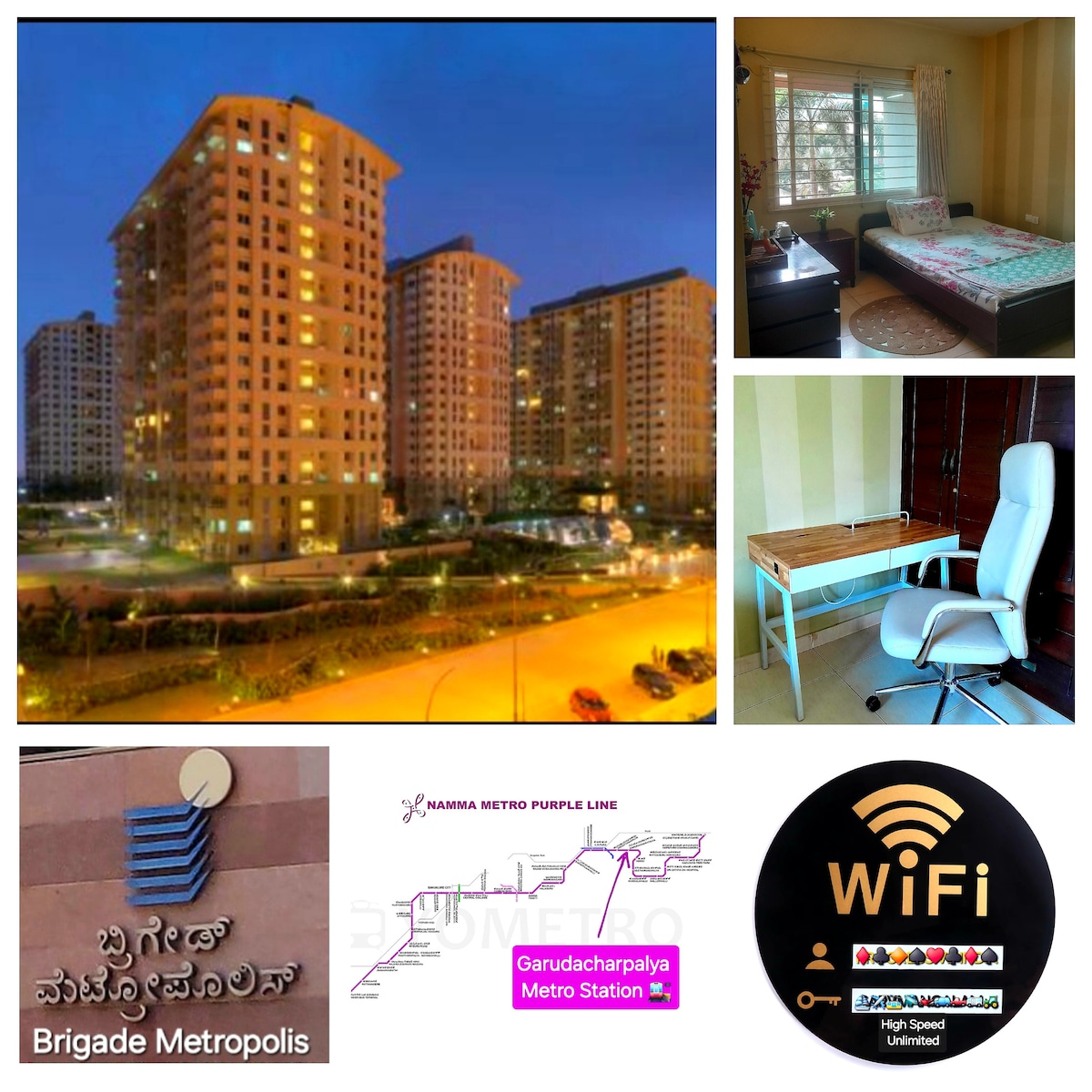 Розкішні багатоповерхові апартаменти 3 bhk у східному Бангалорі в закритому районі. Повністю мебльована гавань може похвалитися сучасними та розкішними інтер 'єрами. Спальні забезпечують максимальний комфорт з кожною спальнею, обладнаною плюшевими постільними речами та сучасними зручностями, а балкони забезпечують захоплюючий вид на місто. Квартира також має повністю функціональну кухню, обладнану побутовою технікою, і є персонал, який допомагає з реєстрацією та будь-якою підтримкою. Гості матимуть доступ до зручностей квартири.