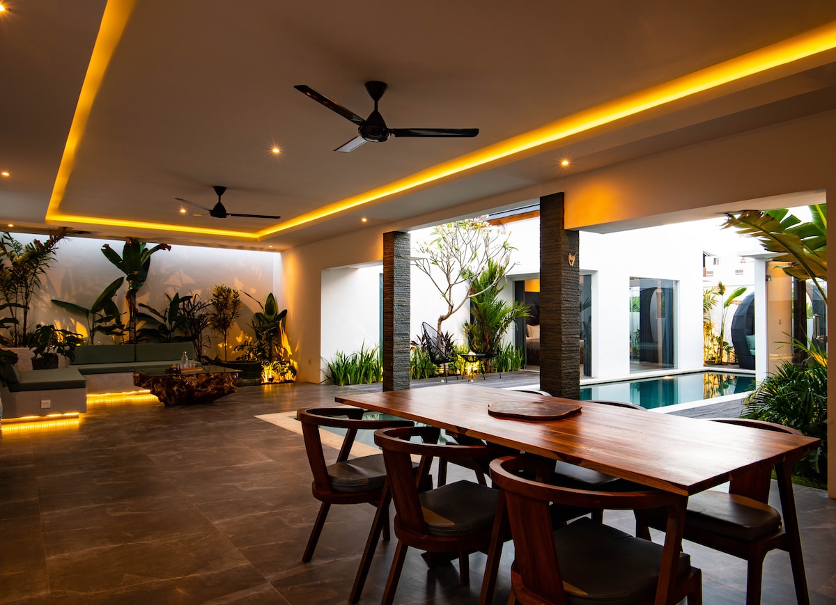 3 спальні з ванними кімнатами для 8 гостей, приватний басейн із 6 шезлонгами, тренажерний зал, тераса на даху та кавоварка Nespresso (візьміть із собою капсули!). Насолоджуйтеся закритими та відкритими вітальнями з кондиціонерами, альтанкою з вентилятором та тихим розташуванням всього за 200 м від ресторанів, 400 м від Джалан-Легіан та 850 м від пляжів Падма та Меласті. У штаті є менеджер, 2 домробітниці та нічний охоронець. Надійний і стабільний Wi-Fi забезпечує постійний зв’язок – комфорт, обслуговування та розташування в одному.