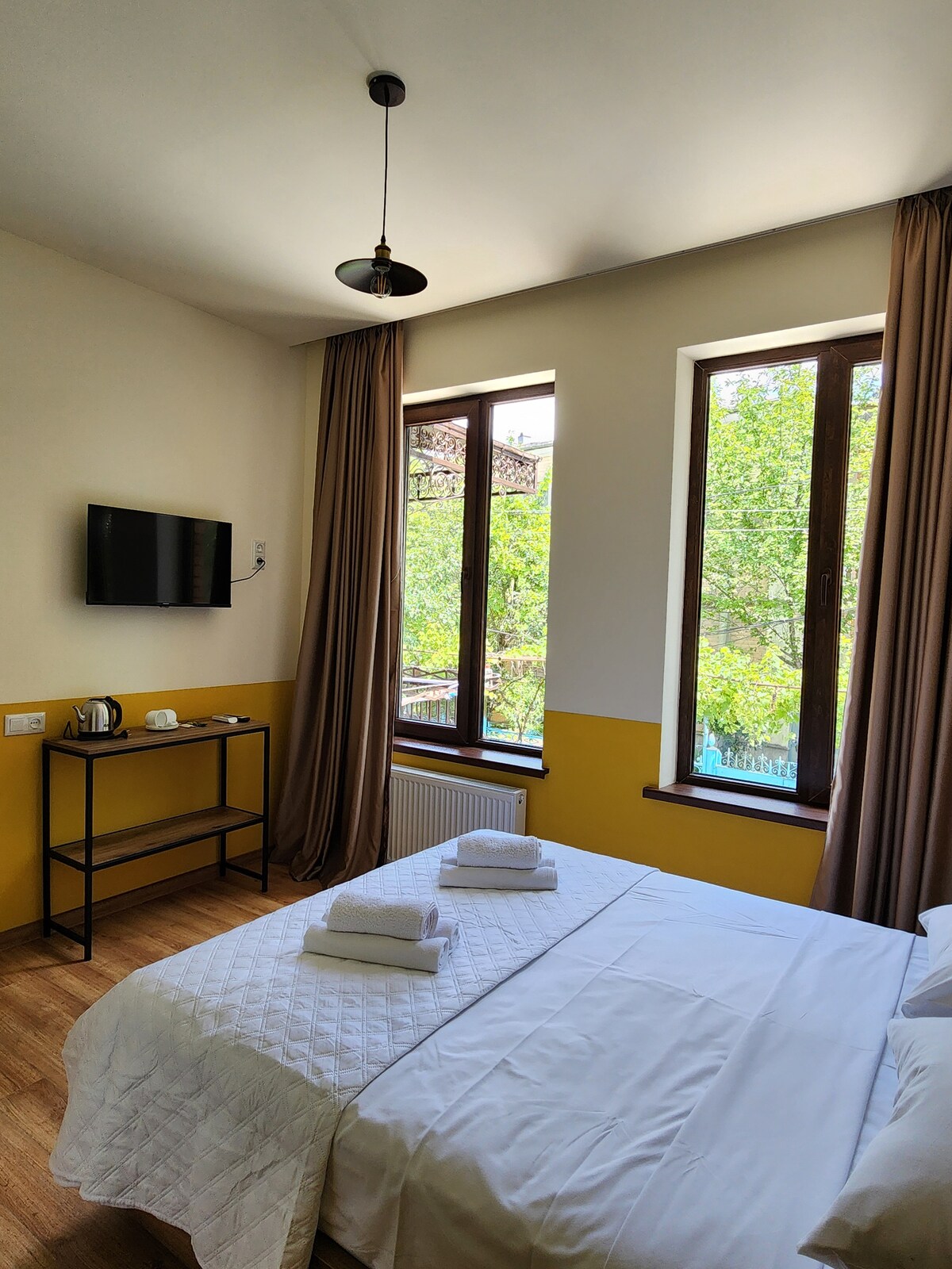 Ласкаво просимо до нашого чарівного готелю в центрі старого міста Кутаїсі, де історія та спокій поєднуються без проблем. Наш бутик-готель має 5 просторих номерів, кожен з яких оформлений з яскравими кольорами та стильним декором, що забезпечує затишне та чудове перебування. Розслабтеся на нашому панорамному балконі, з якого відкривається захоплюючий вид на річку та культові пам 'ятки міста. Розташоване всього в 5 хвилинах ходьби від центру міста. Забронюйте помешкання у нас і відчуйте ідеальне поєднання комфорту, стилю та зручності.