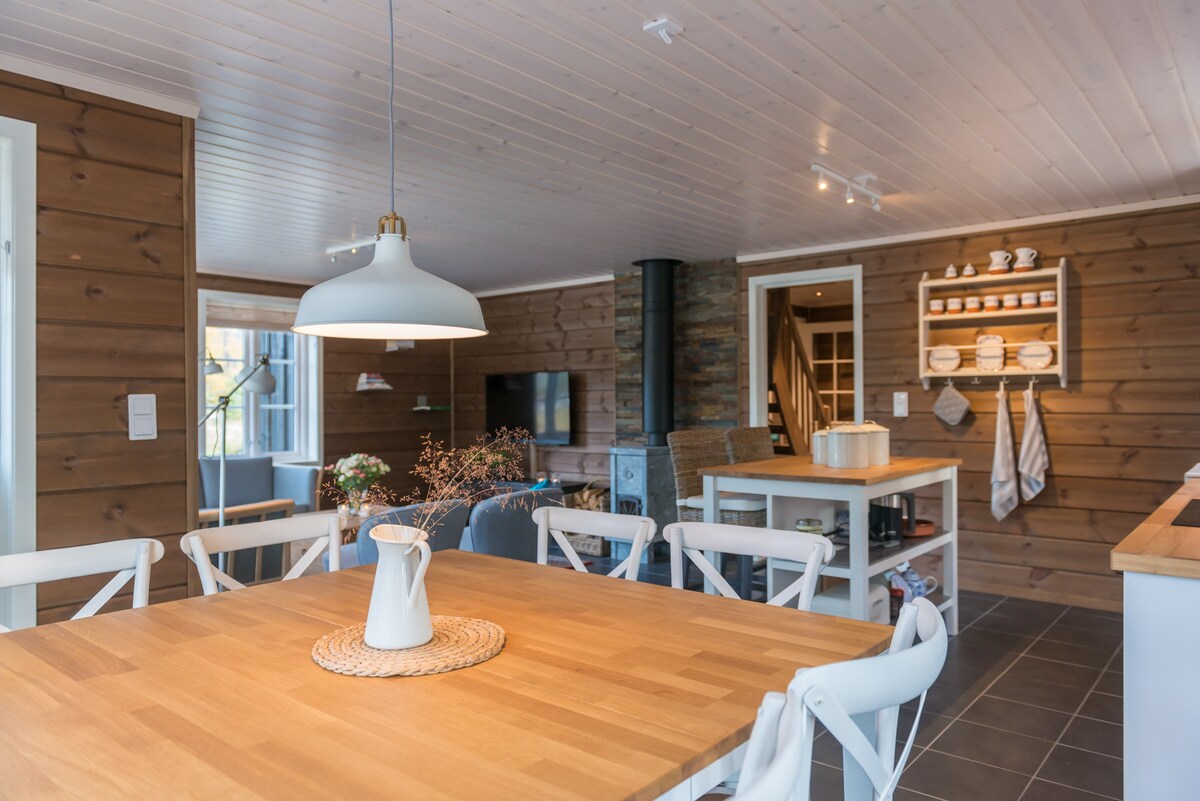 Moderne hytte på 150 kvm leies ut - ligger helt for seg selv - ingen naboer! Hytta er bygd i 2022 og har en romslig stue-/kjøkkenløsning med store vinduer. Dette gir en unik følelse av nærhet til naturen og fantastisk utsikt til både skog, fjell og vann. Stor terrasse på 100 kvm rundt nesten hele hytta gir gode solforhold hele døgnet