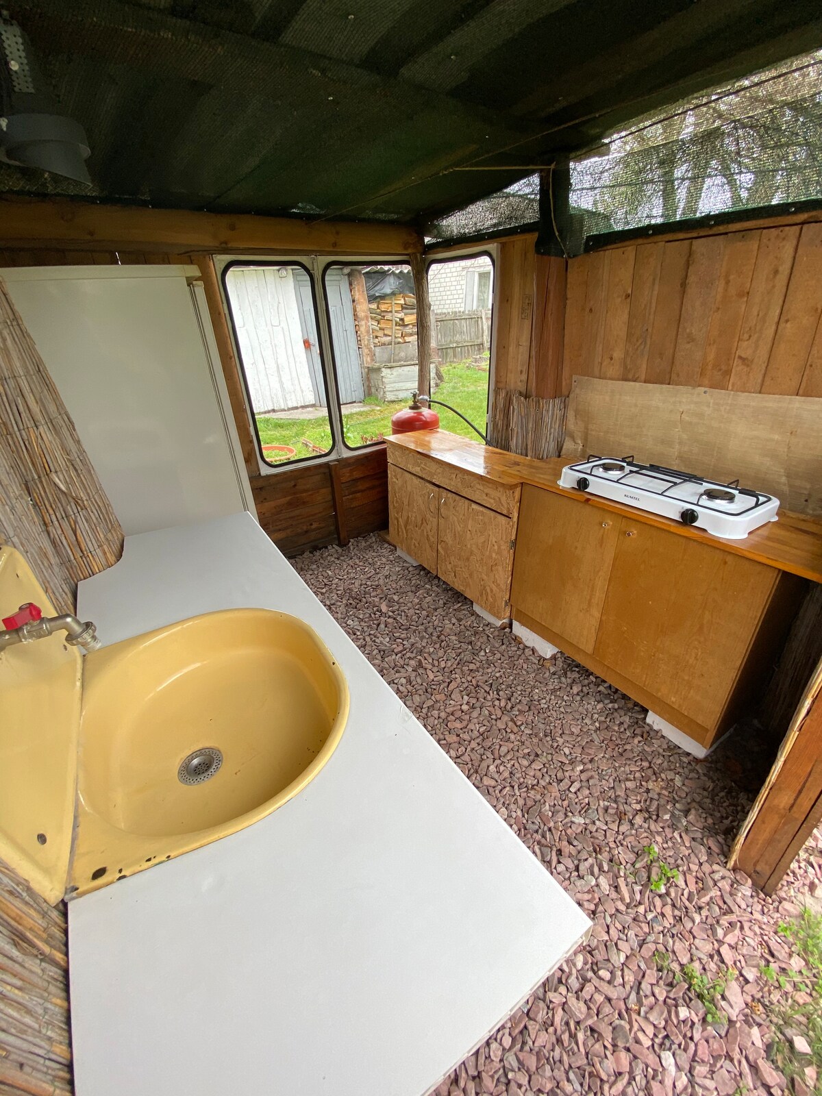 Запрошуємо вас до нашого затишного будиночка. Тут ви зможете відпочити від міської метушні та насолодитися гармонією з природою. Будиночок має все необхідне для комфортного проживання: Зручності: Wi-Fi, опалення (електрообігрівач і дров'яна пічка) та окрема кухня в хвилинному доступі. Вбиральня та душ в окремій будівлі в 20-30 секундах. Зона відпочинку: дворик з барбекю та відкритою кухонькою з холодильником. Околиці: Eco-canping Krucha, поруч пагорби, ліс, Дніпро та маршрути для прогулянок.