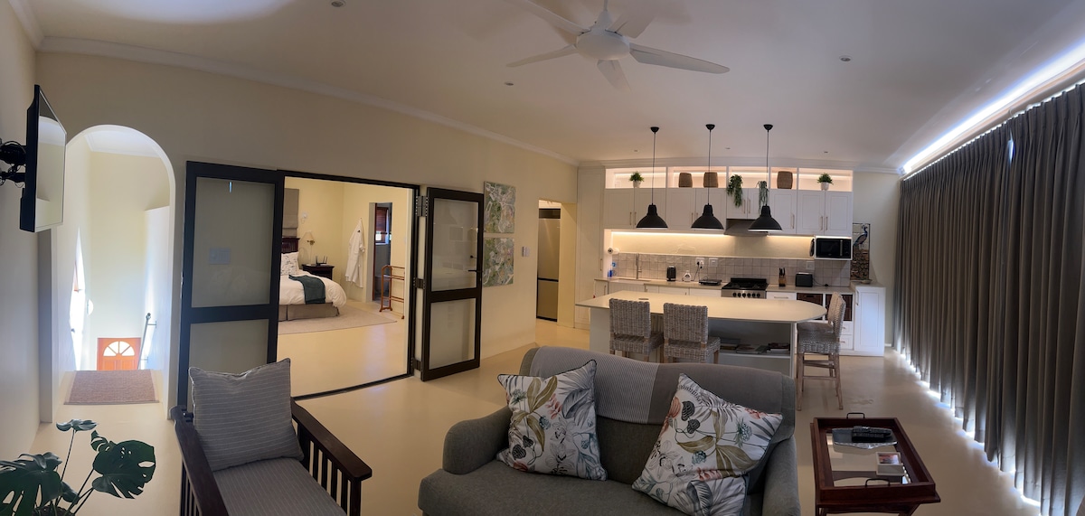 Ця простора і спокійна квартира повністю у вашому розпорядженні. Гості можуть насолоджуватися фермою, річкою, греблею та горами в одному. Тренування з фітнесу починається прямо з порога. Природний заповідник Йонкерсхук також знаходиться всього в декількох хвилинах ходьби. Відпочиньте на великому дивані перед дров 'яним вогнем у холодні та дощові дні. Насолоджуйтеся келихом вина, барбекю та видом на гори з приватної веранди. Це ідеальне помешкання для роботи на фермі. Або вирушайте до міста, щоб насолодитися гарною їжею та вином.