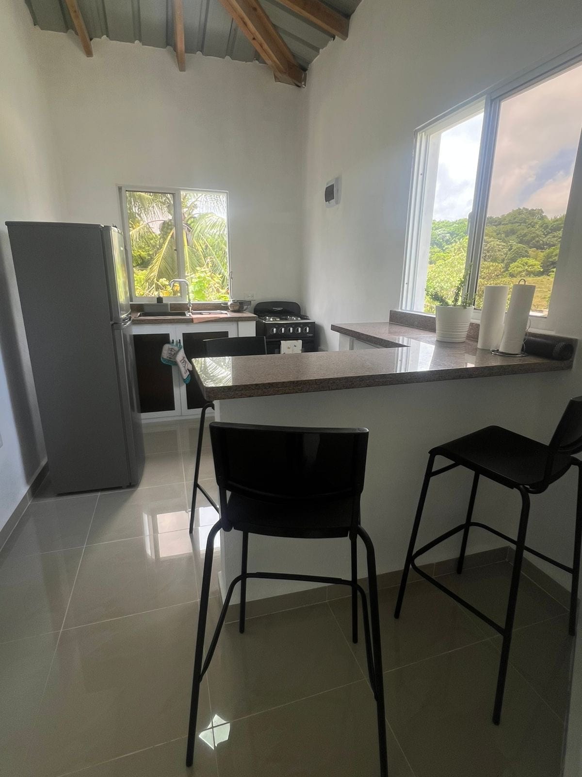Прокиньтеся з приголомшливим видом на океан у цій прекрасній квартирі на північному узбережжі Домініканської Республіки. Насолодіться ранковою кавою або вечірнім вином на приватному балконі з видом на море. У квартирі є затишна спальня, повністю обладнана кухня, Wi-Fi, кондиціонер та все необхідне. Розташоване в тихому Кабрері, це помешкання знаходиться всього за кілька хвилин від незайманих пляжів і чарівних місцевих місць. Воно ідеально підходить для пар, сімей або тих, хто шукає спокійного тропічного відпочинку.