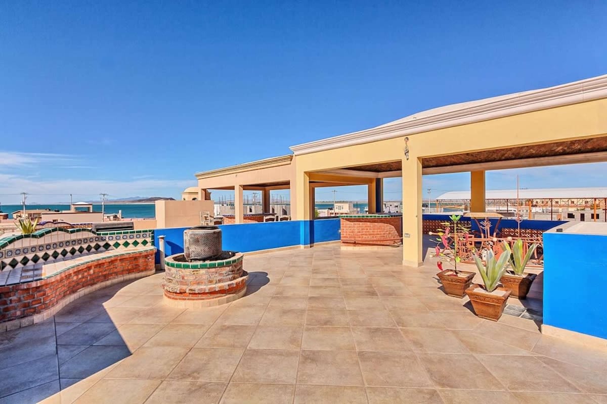 Красива вілла з виходом до пляжу на морі Кортеса з швидким інтернетом! Цей будинок з 3 спальнями та 3 ванними кімнатами розташований у центрі пляжного клубу Manny 's Beach Club, Pitaya Bar і Pink Cadillac. Проведіть день на пляжі, а потім розслабтеся й спостерігайте за заходом сонця з великого патіо з шезлонгами, каміном і грилем для барбекю. Помешкання ідеально підходить для розваг із шаффлбордом і столами для настольного футболу, двома 50-дюймовими смарт-телевізорами та повністю укомплектованою кухнею.