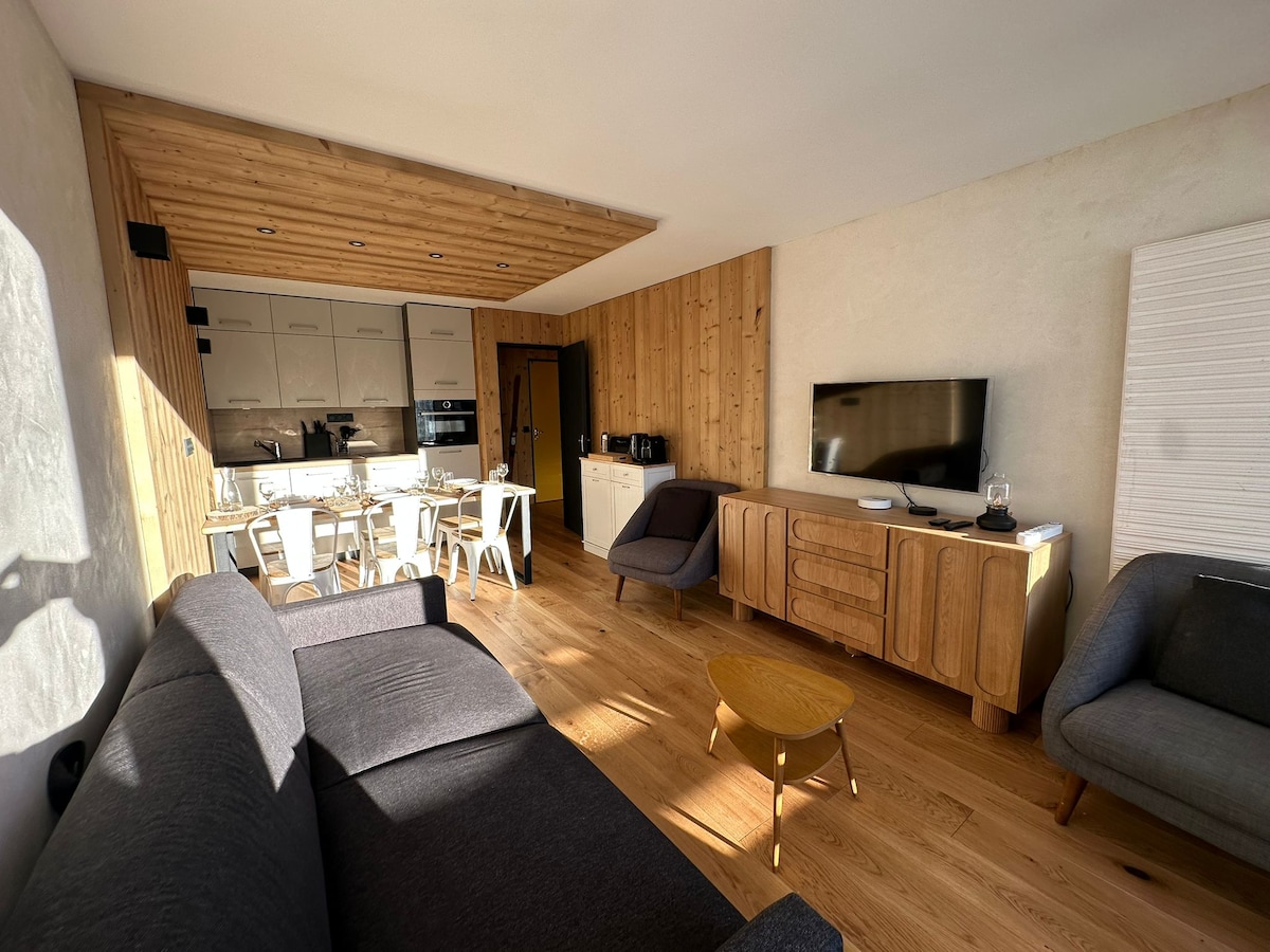 Дозвольте собі насолодитися нашою відремонтованою квартирою площею 43 кв. м, • БАЛКОН І ПОВНИЙ ВИД НА ПІВДЕНЬ (9-й поверх) • БІЛЯ ПІДНІЖЖЯ СХИЛІВ І ГІРСЬКОЛИЖНИХ ПІДЙОМНИКІВ Ідеальне місце для лижників, сімей та друзів, які шукають прямий доступ до району. Коли настане вечір, насолоджуйтеся спокійним відпочинком: • 1 спальня з романтичним видом • 1 каюта з двоярусними ліжками • 1 диван-ліжко (будинок-трансформер) Постільна білизна та прибирання включені. Шкільні канікули: перебування ≥ 5 ночей.