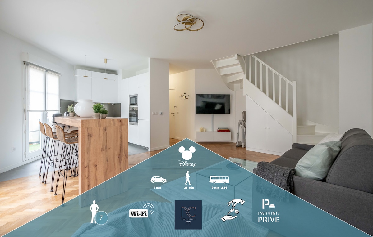🎬 Проведіть унікальне перебування в Minerva Studio: будинку на 6 осіб, оформленому як справжня кінознімальна площадка. - 5 культових прикрас (Гаррі Поттер, пірати, Індіана тощо). - Постільна білизна преміум-класу – 👶 Підходить для сімей - Діснейленд 30 хв. • Париж 50 хв. - Самостійне прибуття • Безкоштовна парковка 💖 Автоматичні пропозиції, що застосовуються Airbnb: 🥰 –15% від 2 ночей • 1 ніч безкоштовно за 7 ночей ✨ Доступні ексклюзивні опції (рання реєстрація прибуття, пізня реєстрація виїзду, шампанське)