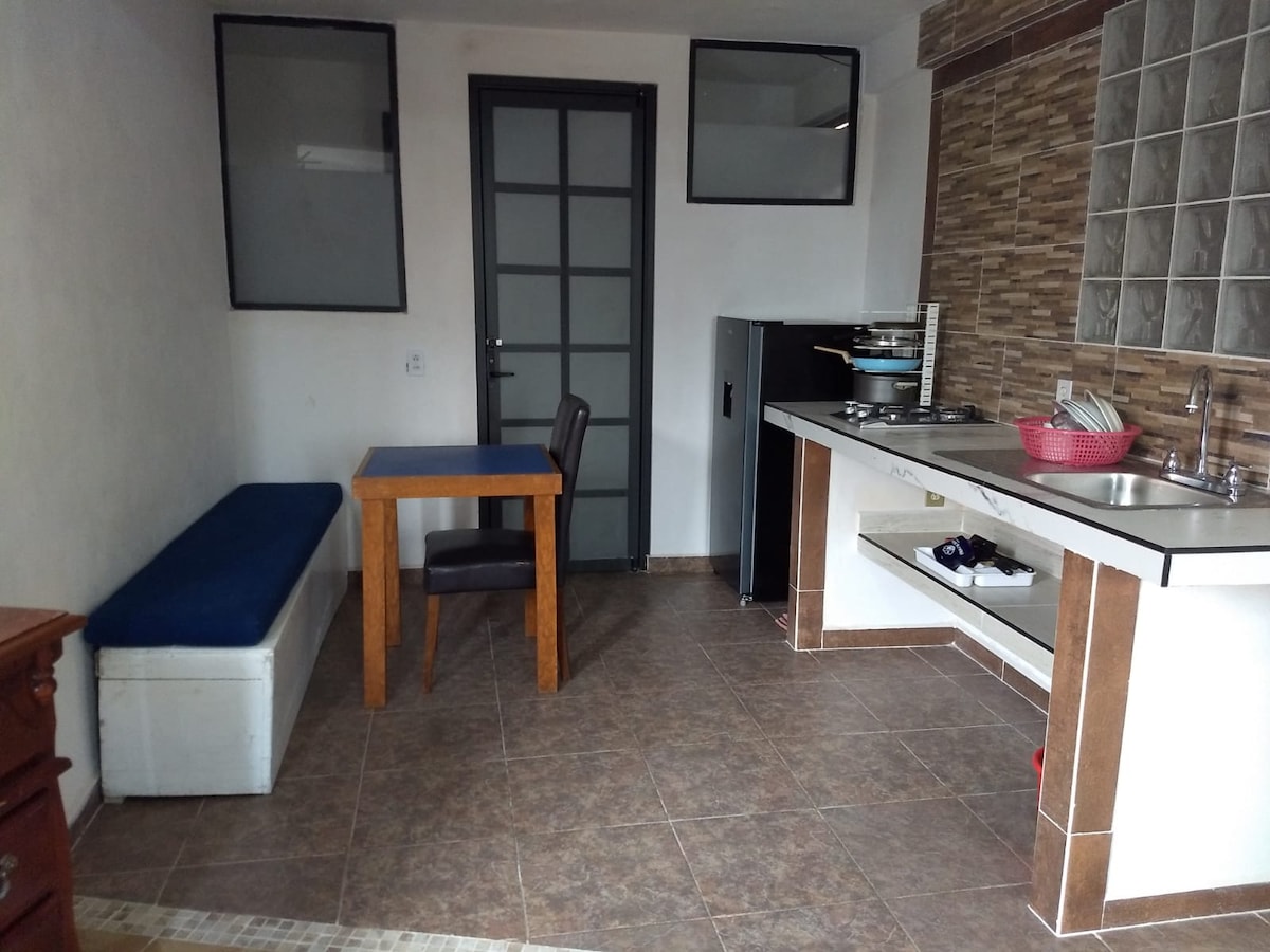 Житло є незалежною квартирою головного будинку, з власним входом. Вона має одну кімнату (2 особи, двоспальне ліжко); 1 студію (з обладнанням для сніданку, столом, стільцями та книжковими полицями); міні-кухню (без плити, тільки з електричною плитою); повну ванну кімнату; і 1 паркувальне місце. Розташоване на півдні Мехіко, в 5 хвилинах від музею Долорес Ольмедо та легкорельсового транспорту Noria, в 10 хвилинах від знаменитих трахінерів і квіткового ринку.
