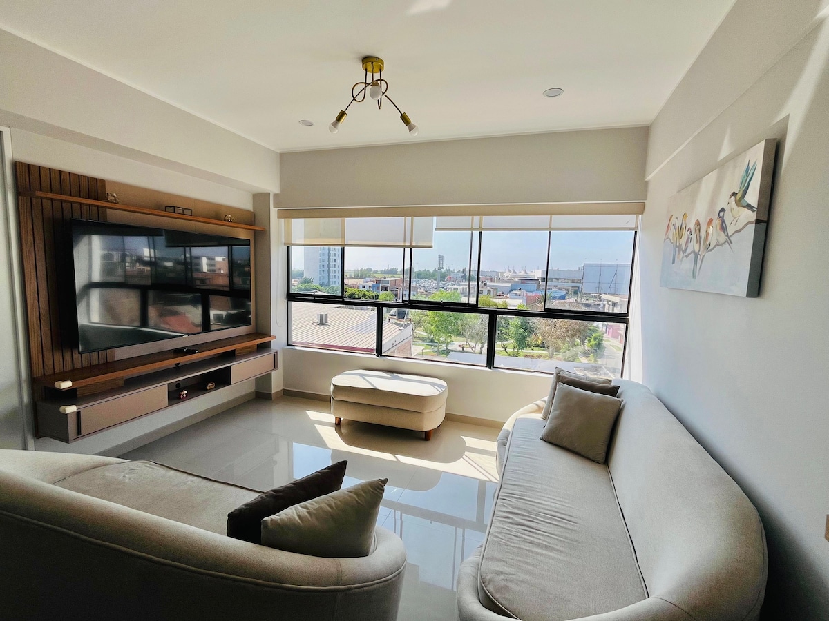 Відпочиньте в нашій затишній квартирі перед парком, в одному з найбільш центральних Трухільо, в 2 кварталах від UPAO та Real Plaza і в 6 хвилинах від площі Пласа-де-Армас. Будьте впевнені в цьому помешканні, відпочиньте наодинці, у групі або всією сім 'єю! Ідеально підходить для відпочинку, ділових поїздок, роботи та віддаленої роботи.