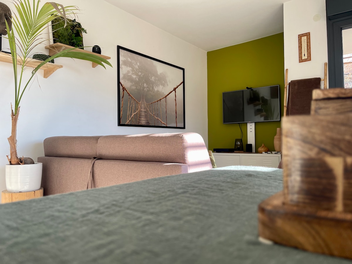 Квартира складається з вітальні/їдальні з великим столом на 6 осіб, двох спалень з двоспальними ліжками 160x200, ванної кімнати з душовою кабіною, обладнаної кухні та окремого туалету. Квартира підходить для геїв. Розташована між Магнаном і престижним районом Фаброн, квартира знаходиться в семи хвилинах ходьби від набережної, трамваєм, який відвезе вас назад до центру міста та Англійською набережною. Звідси відкривається дивовижний вид на висоту.
