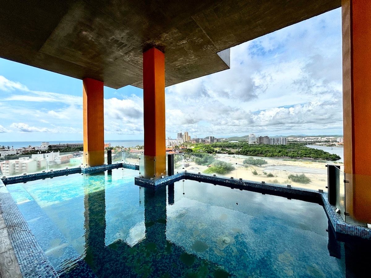 Depa de lujo con alberca, vista al mar & sky bar