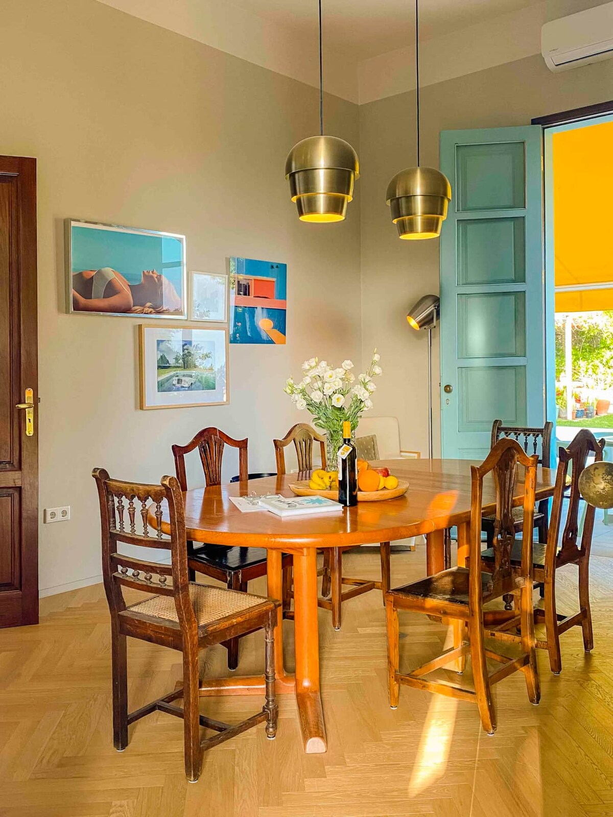 The light-flooded villa feat interior design classics alike Eames, Rohe or Gray combined with classic Palmerian furniture. The 2 bathrooms are individually designed and equipped with high-quality showers, fittings & underfloor heating. The bright kitchen is a colorful meeting point of the house with direct access to the pool/terrace. Equipped with high-quality appliances/kitchen utensils. 3 bedrooms with double beds. Garden, pool & palms: memories of old Palm Springs are inevitably awakened.