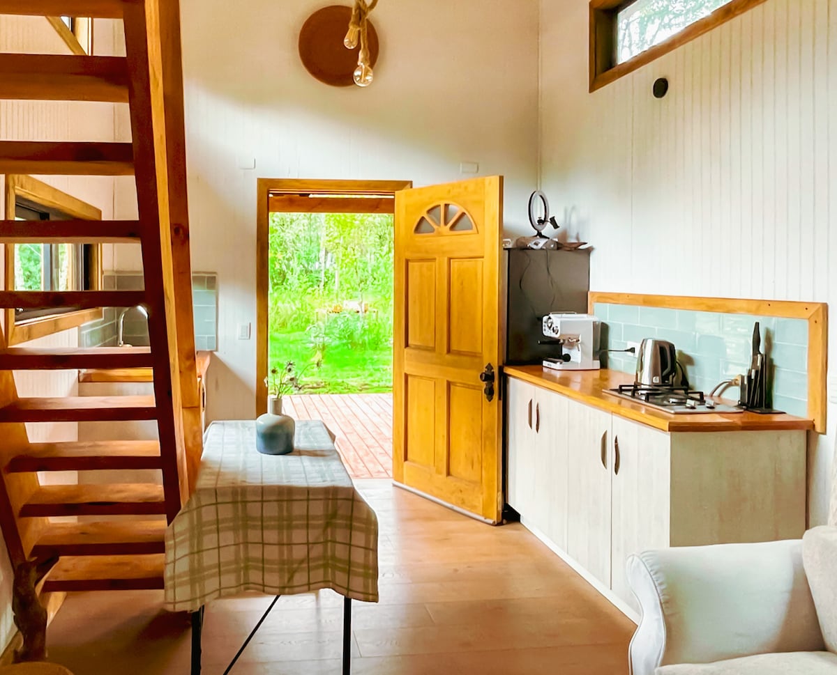 Відпочиньте в цьому унікальному й спокійному помешканні. Насолодіться вуличною річкою в цьому новому мінібудинку. У зрубі є причал і спільний каяк. Ідеально підходить для пар, які люблять спокій і природу, лише 15 км від міста.