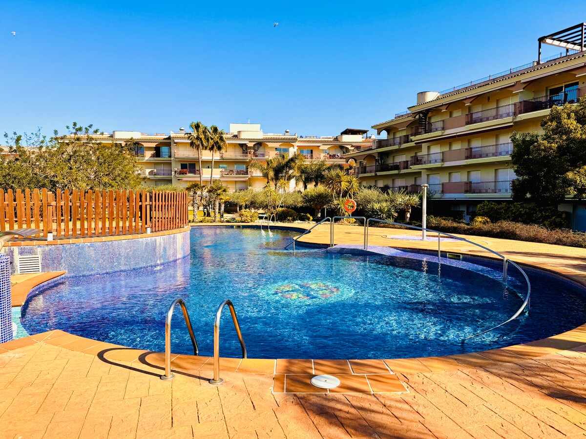 Затишна квартира з видом на море, прямо на пляжі, в Ла-Рапіта, Таррагона, з терасою та захоплюючим видом на Середземне море. Вона має функціональне планування, 2 зручні спальні та яскраву вітальню, де можна насолодитися відпочинком. Оснащене високошвидкісним Wi-Fi, Smart TV та кондиціонером, це ідеальне помешкання для безтурботного відпочинку. Отримайте унікальні враження від пляжу, дельти річки Ебро та її природних ландшафтів.
