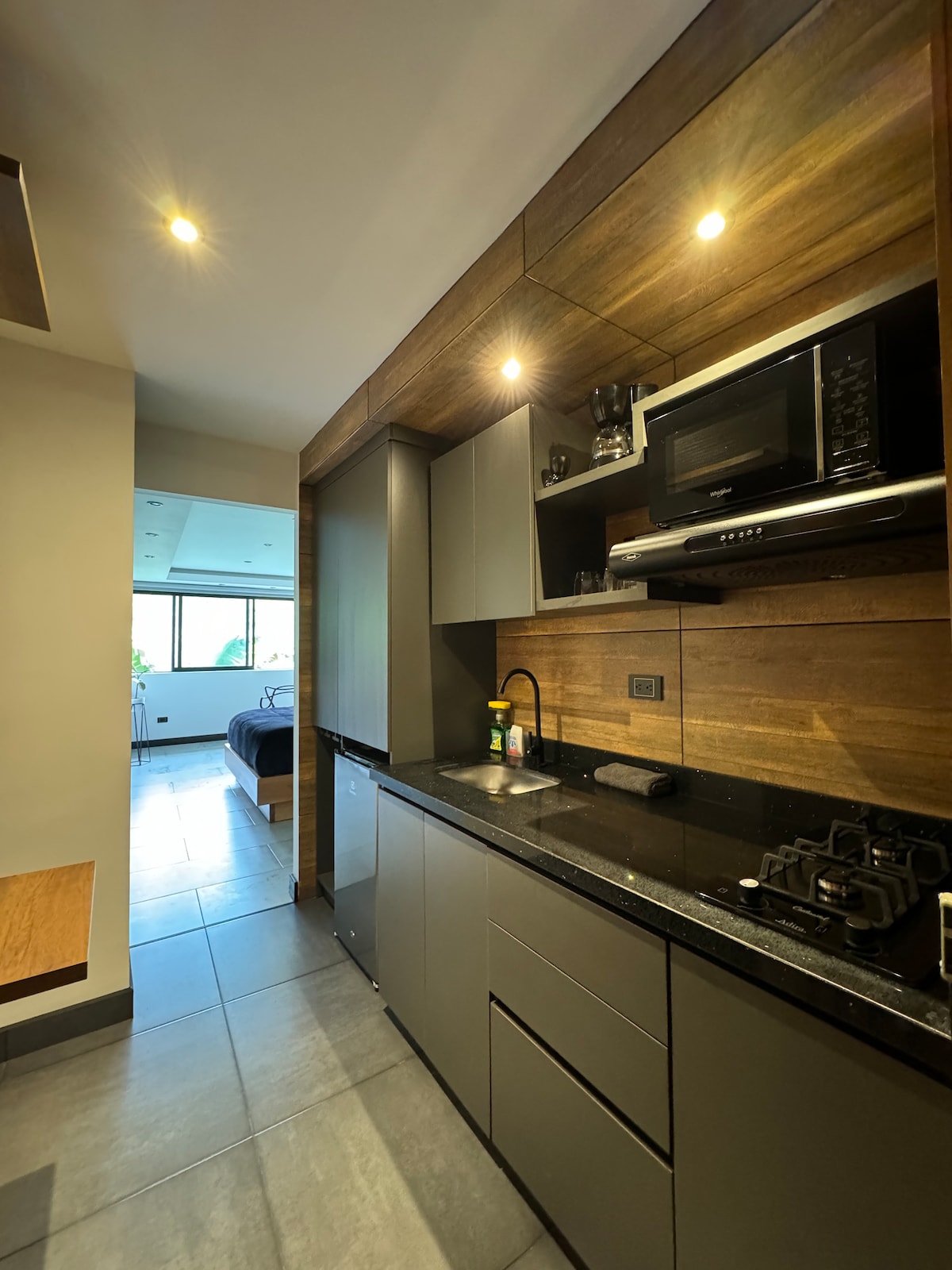 Modern apartment with mountain views, ideal for 2 couples and up to 6 guests. It features 2 independent bedrooms, a private study with desk and double sofa bed, 2 bathrooms, a fully equipped kitchen and fast WiFi. Located in a quiet and safe area just 4 blocks from the main square. Free parking in front of the building and complimentary local coffee with 4 brew methods. Perfect for relaxing or remote work in Jardín.