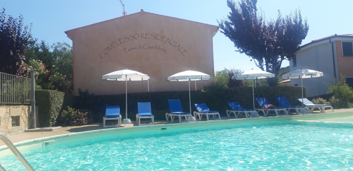 Wonderful 6-bed flat on the ground floor, in a splendid residence surrounded by nature, with 2 swimming pools, private park and playground (2 parks). It consists of a kitchenette, living room with sofa bed, bedroom with double bed, bedroom with 2 beds, bathroom, 2 private terraces, 200 metres private garden and private parking space (3 TVs). The kitchen is very well equipped. Air conditioning and heat pump (3 splits), free wi-fi. Bathroom with shower, hairdryer, iron and washing machine.