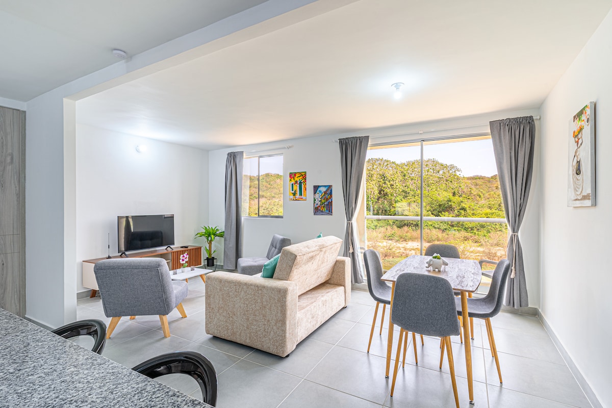🏝️ Your cozy coastal escape awaits! Sunlit spaces with sea-spray décor, pool, volleyball court & kids’ park perfect to relax. Just 5 min by car to Manzanillo Beach, 15 min to Old Town, and 9 min to the airport. Only 1 min away, enjoy Las Ramblas Boulevard with lake-view restaurants, live music & stores like D1, Ísimo, Ara & Éxito. 2 min away, visit Granja Los Abuelos a fun, Disney-style family park with animals, dancing staff, great food & cold beer! 🌴