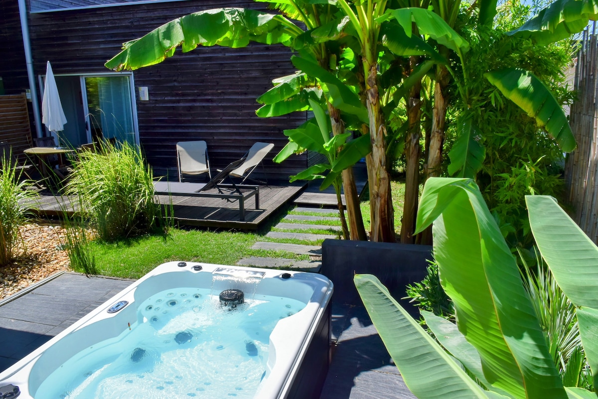 Нехай ваш розум блукає, споглядає природу в тропічному та пишному саду з приватним спа-салоном всього в декількох кроках від берегової лінії. Розслабляюче та екзотичне перебування! Куточок Балі на басейні:) 2VTC доступні для прогулянок! Ця оселя ідеально підходить для перебування без автомобіля, оскільки до неї легко дістатися, і поблизу є багато зручностей і заходів. Насолоджуйтеся екологічно чистим і немоторизованим перебуванням! Відпустка 100% басейн!
