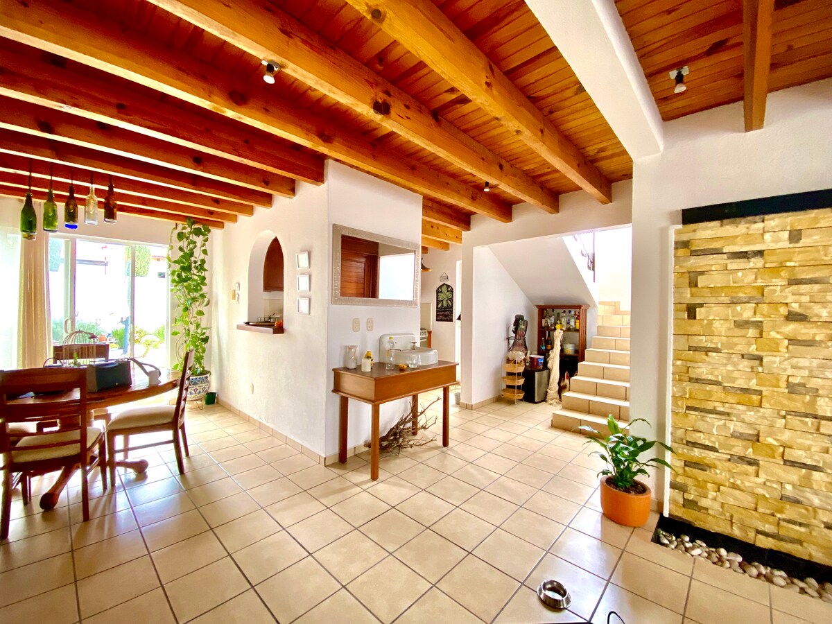 Відпочиньте всією сім 'єю в цьому місці, де дихає спокій. У будинку тіток ви відчуєте себе повністю розслабленими, оточеними рослинами, квітами з видом на поле для гольфу та частину ставка, де можна побачити качок, спокій, який оточує це місце, є безцінним. Ви можете насолоджуватися басейном і приготувати м 'ясо на грилі на терасі. Мексиканський колоніальний стиль дозволить вам почуватися в комфортному місці.