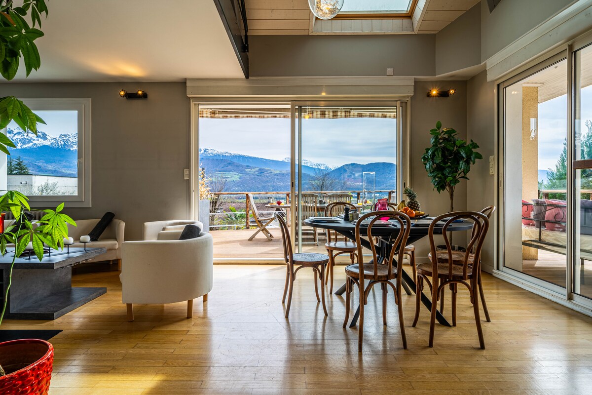 Розважайтеся сім 'єю в цьому стильному помешканні. Насолоджуйтеся басейном, гідромасажною ванною, терасою та садом. Головна спальня з суміжною кімнатою, 3 спальнями та ліжками queen-size. Сучасний декор. Великий сад навколо будинку ідеально підходить для дітей. Поруч із багатьма цікавими місцями: професійними, зручностями, гірськолижними курортами, озером Бурже, Греноблем.