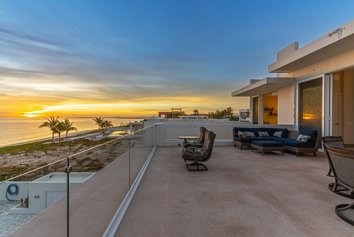 Розслабтеся стильно всією сім 'єю в цьому спокійному помешканні. Усередині є велика робоча кухня, тепла та затишна вітальня, дві спальні, кожна з яких обладнана власним телевізором, ліжком розміру King size, та дві повноцінні ванні кімнати. Захоплюючий вид на море Кортеса з патіо на даху з великою кількістю місць для сидіння, а для прохолодних ночей – гарний камін, щоб допомогти відпочити після дня на морі! Менше хвилини від пляжу, ви не можете помилитися з замком Кортеса!