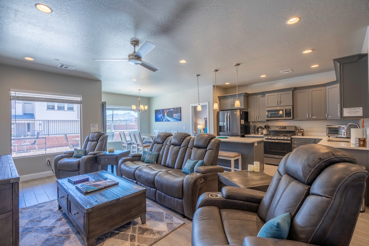 Комфорт і відпочинок чекають на вас у нашому шале «Каньйон». Абсолютно НОВИЙ розкішний відпочинок на курорті Zion Village Resort. Повністю обладнані надувними дошками для веслування, байдарками, електросамокатами та футболом, ми отримуємо задоволення для всієї сім 'ї! Зручне розташування поблизу національного парку Зайон, Сенд-Холлоу та всієї краси тут, у Південній Юті, ви будете готові до спогадів і гарних часів!