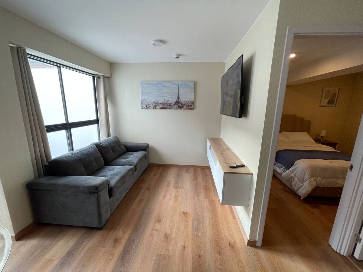 Stunning new Apartment fitted with 1 bedroom, 1 full bathroom, a living room and a kitchen. It is conveniently located 5 minutes from the financial district of Peru. In front to a new mall. Cleaning service included with more than 7 days booking. Wifi speed is 50 mbps Departamento nuevo, un dormitorio un baño completo, sala, cocina. A 10 min. del distrito financiero del Peru, y frente a centro comercial. Servicio de limpieza incluido con alquiler mayor a 7 dias.